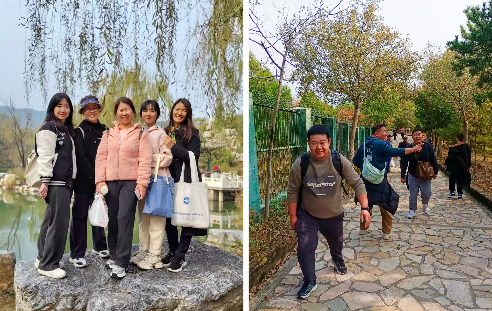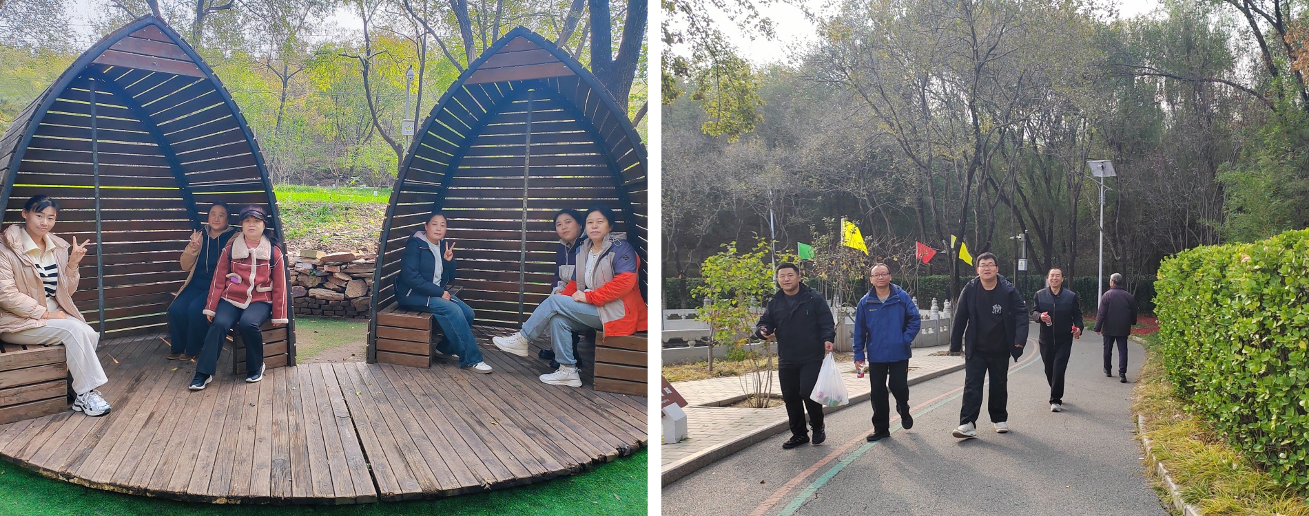时值深秋,园内彩叶缤纷,湖山相映,展现出一幅动人的自然画卷。员工们漫步在秋意盎然的园区中,或沿登山步道拾级而上,领略层林尽染的壮美;或在静谧湖畔驻足流连,感受秋日的宁静祥和。大家三五成群,时而交流畅谈,时而合影留念,在轻松愉快的氛围中增进情谊。