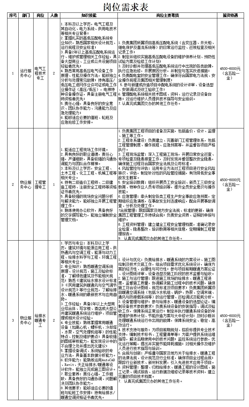 本次招聘专业技术人员,从事工程管理、技术专工等工作。