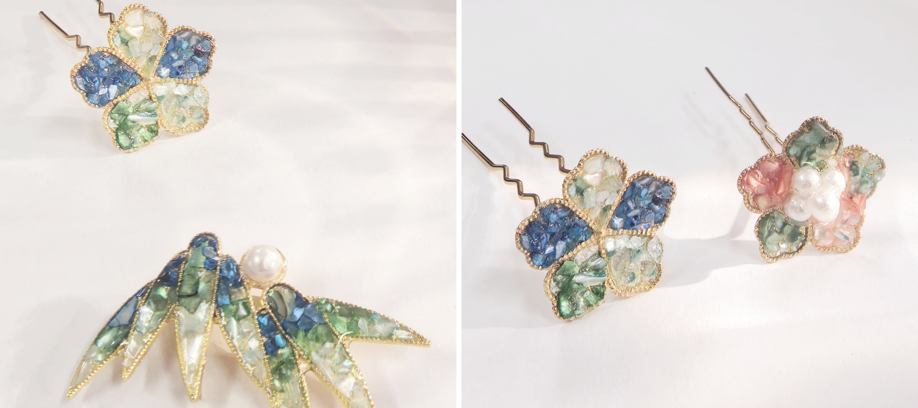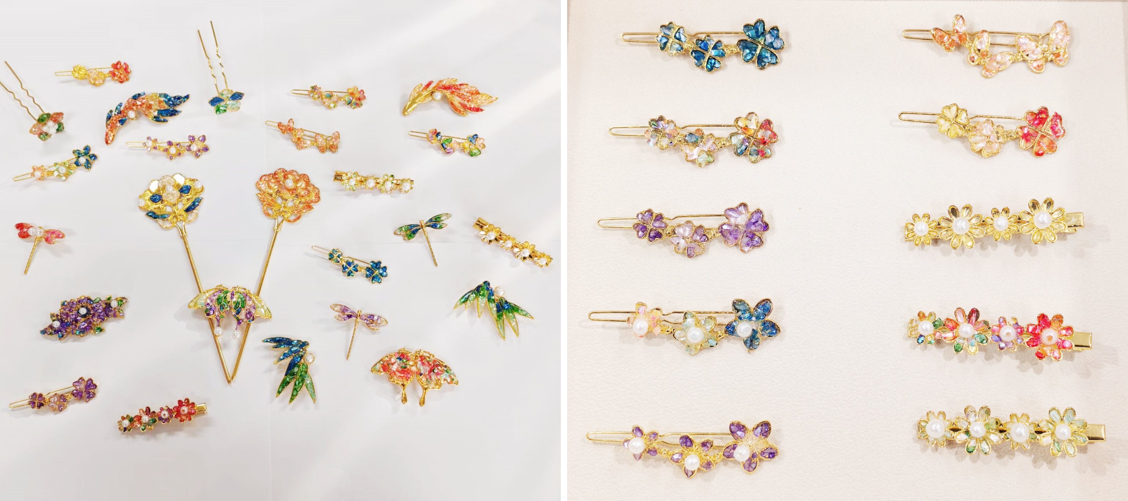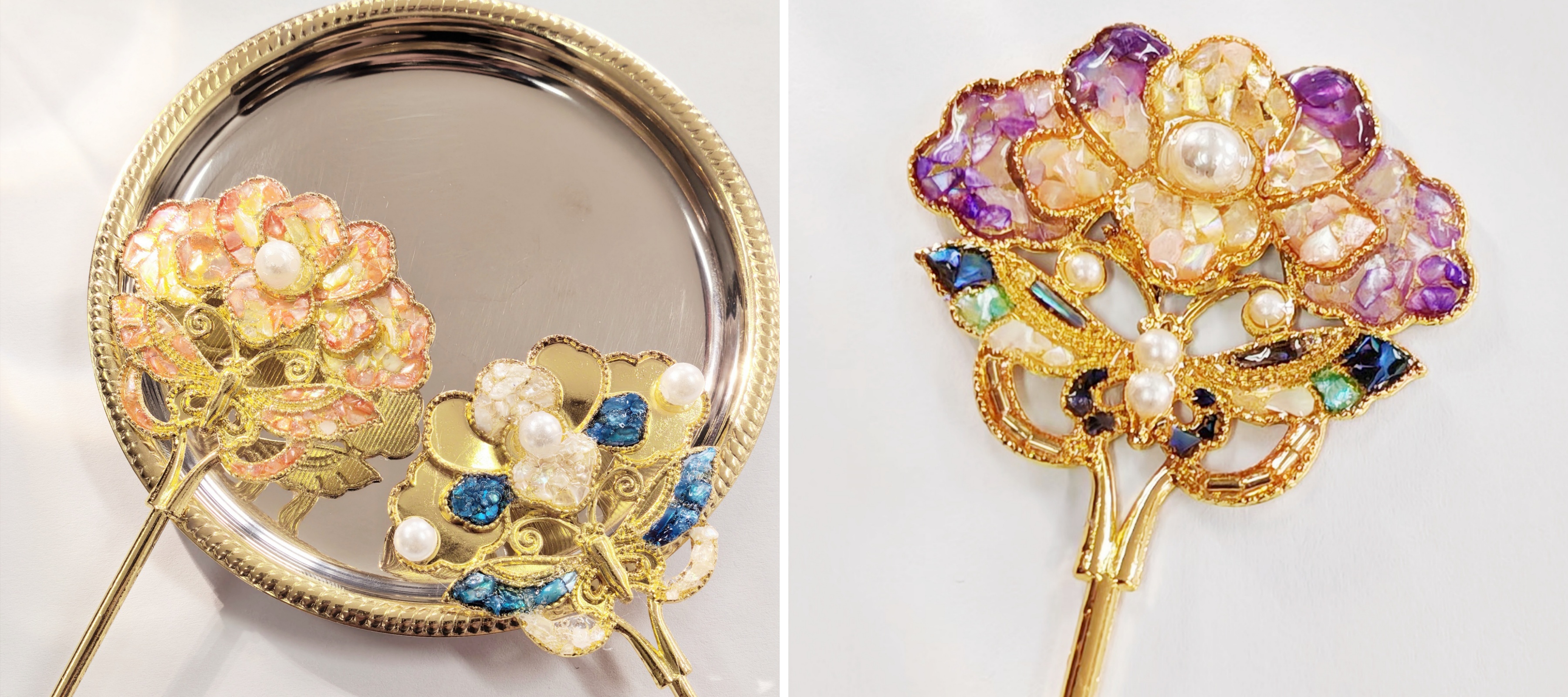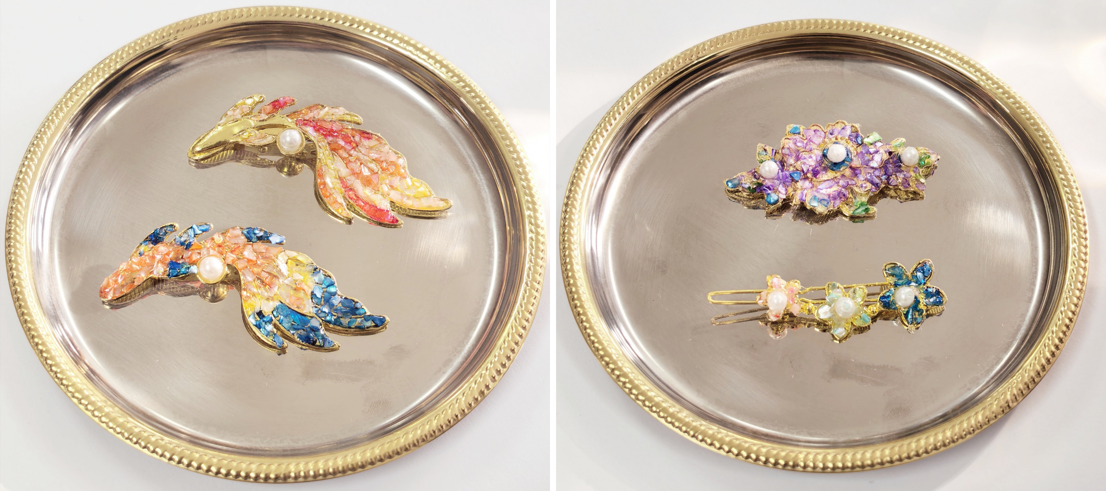 在实操环节,大家围坐一堂,从选材、设计到粘贴、封层,一步步沉浸于手工创作的乐趣之中。原本朴素的发簪、胸针,在一双双巧手下焕发出璀璨光彩。