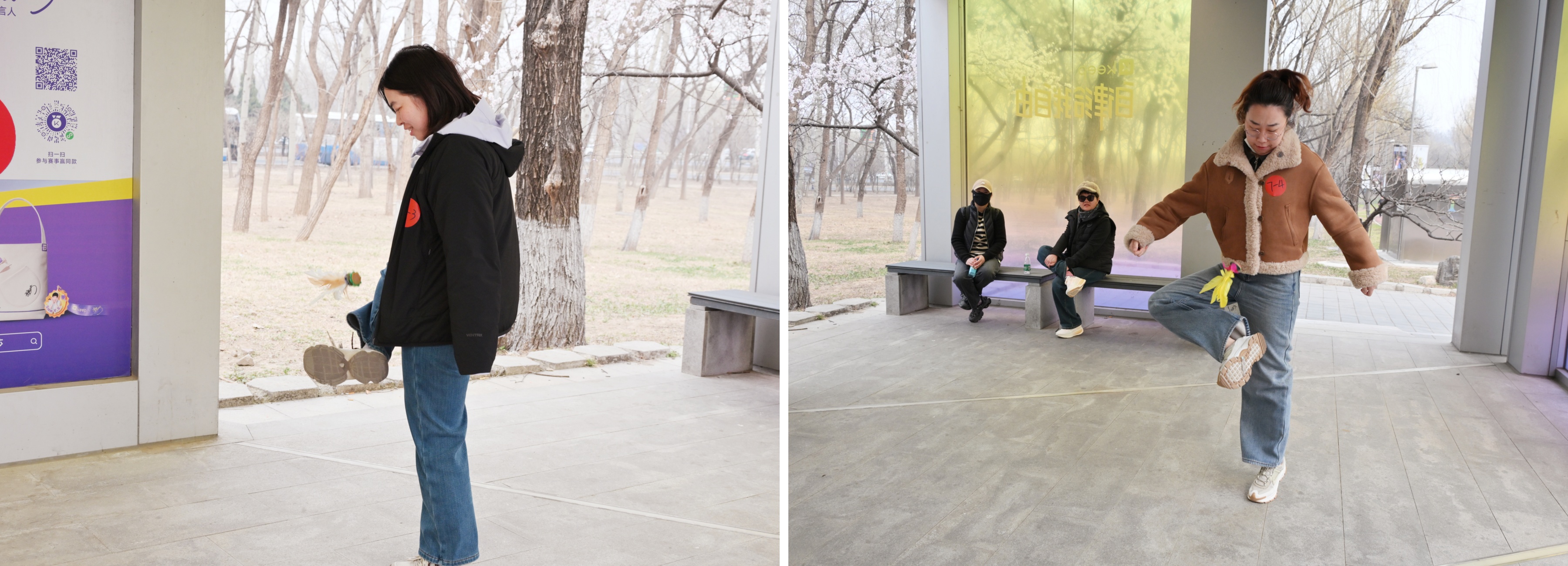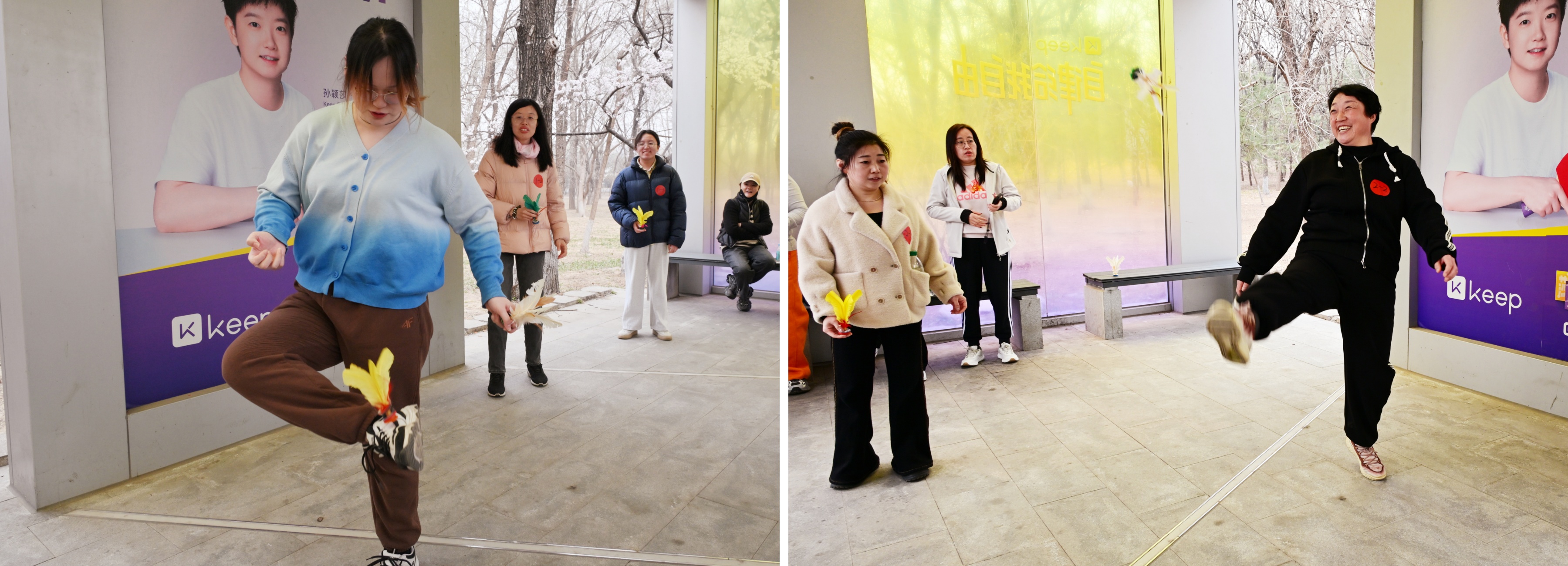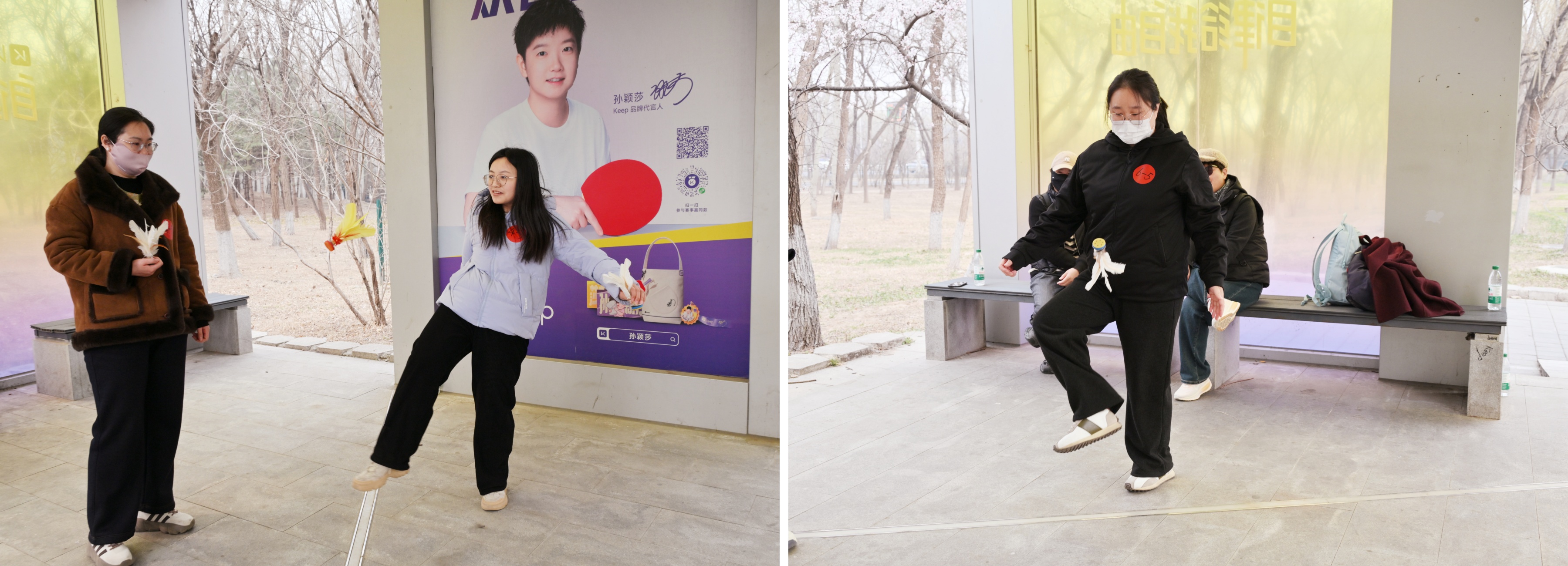 “接力踢毽子”中,毽子在脚尖轻盈翻飞,每一下都凝聚着默契与坚持,赢得阵阵喝彩。